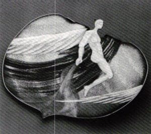 The 20th-century revival of enamel may be dated from 1959 when the Museum of Contemporary Crafts in New York mounted a landmark group of historical and contemporary shows. Six of the pioneers from that period are in this exhibition: Kenneth Bates, John Paul Miller, June Schwarcz, Margarete Seeler, Joseph Tripetti and Helen Worral. Not until 14 years later (1973) ws the next large show mounted, this time at SUNY New Paltz, with Jamie Bennett. William Harper and Bill Helwig, all of whom are included in the current show. So, the yardstick used here has been historical significance, commitment and contribution to the movement, not just technical excellence or brilliance, albeit these attributes abound.