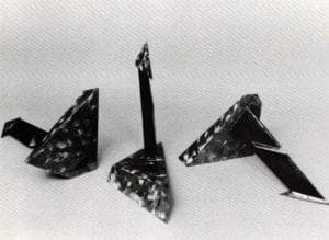 Responding to question, Ross predicted trends in metalwork evolving toward personal environment pieces that express individual style and taste. American manufacturers should evolve toward responsive small production runs as do certain European industries currently. She postulates that Europe is ahead because Europeans have more tradition and government support for artists. I would further add that the strong position Europe enjoys is a product of a multitude of excellent technical and design schools grouped in relative geographic proximity. However, it is a mistake to assume that the systems and style of Europe will find easy adaptation in the United States. Due to our diversity, trends in the production of avant-garde metal or jewelry design will not be supported by a popular base unless they address a need or develop an innovative function. I think we have to define a direction in production metal arts based on our cultural heritage melded with technology and sensitive to our pluralistic design esthetics.