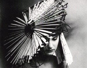LAM de Wolf's headdresses seem to dispel any notion that the exuberant movement of body sculpture and performance jewelry is on the wane, as she continues to progressively explore material, method, form and wearability that challenges the boundary between theater and dramatic ornament. When de Wolf burst onto the international scene in 1980, her a most insouciant Mikado stick and valve tubing works were already antithetical to the cold, logical, cerebral jewelry of Bakker/Leersum that characterized the Dutch avant-garde. While sympathetic to her fellow countrymen's iconoclasm toward traditional jewelry, de Wolf eschewed their sanitized analytical design approach in favor of an intuitive, primitive, painterly expression. Ralph Turner observed that her work had an organic, ethnic, violent quality—more akin to Pollock than Mondrian—whose spirit echoed that of the layered clothing of North African nomadic tribes.