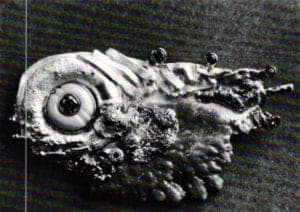 The effect of traveling through Robert Lee Morris's fantasy world was quite unexpected. Upon arriving at the inner cave, after witnessing jewelry displayed in various unusual ways in unsuspected places, the viewer came upon pieces conventionally exhibited on torsos. Ironically, however, in this atmosphere this seemed as unique and intriguing a way of presenting jewelry as any of the other means. Endowing the pieces with allegorical meaning negated the idea of jewelry as fashion accessory, while maintaining wearability.