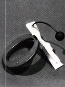 The work of Leslie Leupp and Billie Jean Theide does not function obviously in the realm of the political. However, they may be included simply by their use of the material technology. Leupp's anodized aluminum bracelets with companion stands are articulate statements of form, function and expression. They comment lightly at the faux pas of metalwork technique without being blatant in the face of tradition.