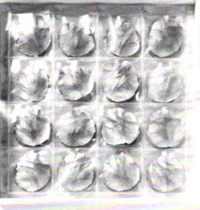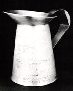 Gerd Rothman's Sammlung is a white-lacquered wooden box that contains 100 paper-thin castings taken from palm imprints of the artist's friends. They are filed in protective slide sheets with room for future "friends." The tin imprints belong to metalsmith greats, such as Hermann Junger, and their signatures are on the back of each palm impression. The palm castings, to those who were able to read the information, revealed each individual's pasts and futures in faintly engraved lines of love, life and death. Since the information could not easily be read, and since it was not apparent that these were palm imprints because of their disengaged context, what remained was a graphic pattern. One of jewelry's roles is to adorn the body, but here the process was reversed; a part of the body was transformed into an ornamental statement. Information became ornament.