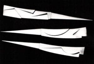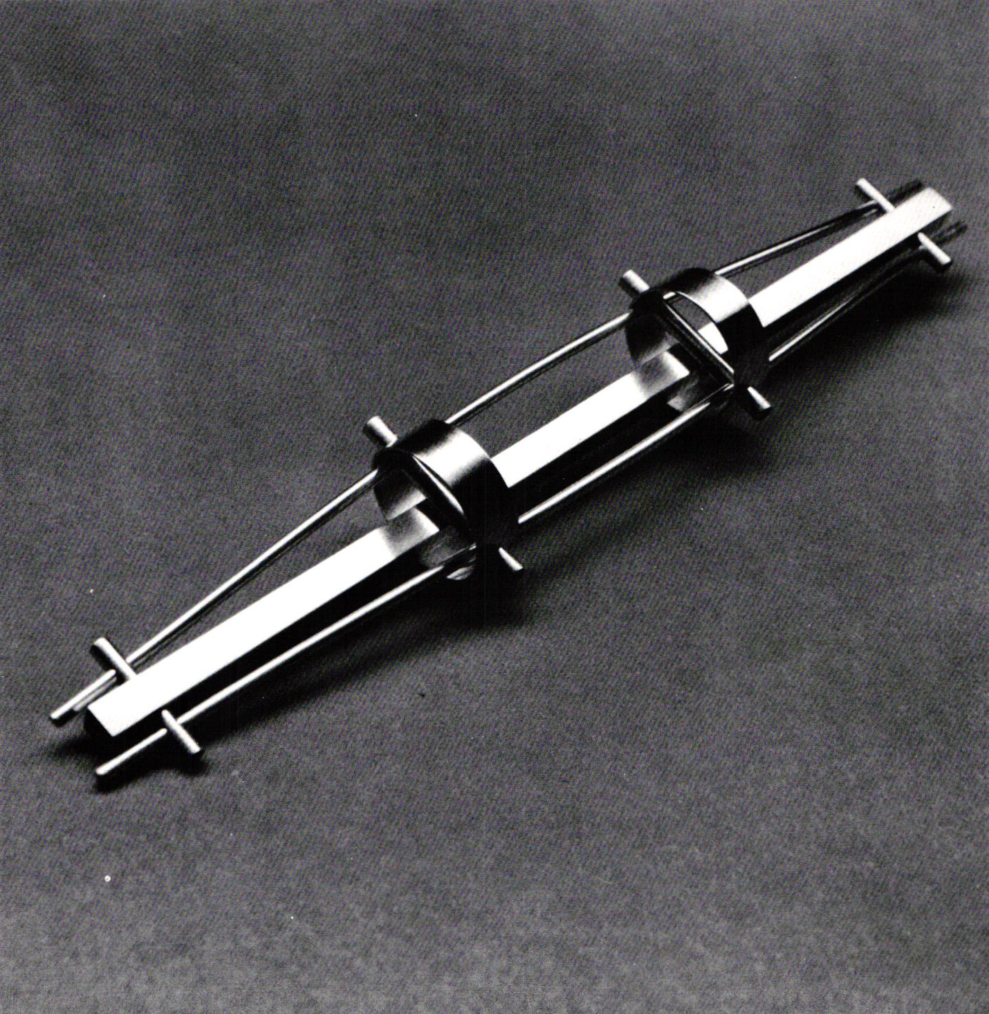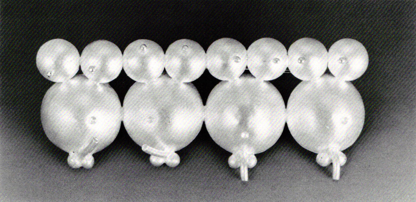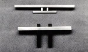 Trained in Prague, Czechoslovakia, at the School of Graphic Design and the School of Building Technology and Architecture, Eisler has consistently explored structural concerns in jewelry through the use of metal, organic materials and space. In the past four years, Eisler's work has evolved from constructions comprised of sterling silver, stainless steel, along with ivory, ebony and/or slate which displayed a clearly engineered feeling, to bridgelike assemblages (made from the same materials) that explored tension. The current exhibition begins at the source by illustrating Eisler's desire to approach design from its simplest origins (as regards shape) and to progress logically along an endless formal route.