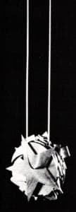 The work is divided into three categories. The first is a series of abstract brooches ranging from very simple linear designs to complex geometric studies. Most notable are the Swedenborgian Universe pieces, which exemplify his early exploration into the esthetics of good jewelry design. Based on the concept of an ordered, heavenly hierarchy, they are geometric progressions of concentric circles and spheres.