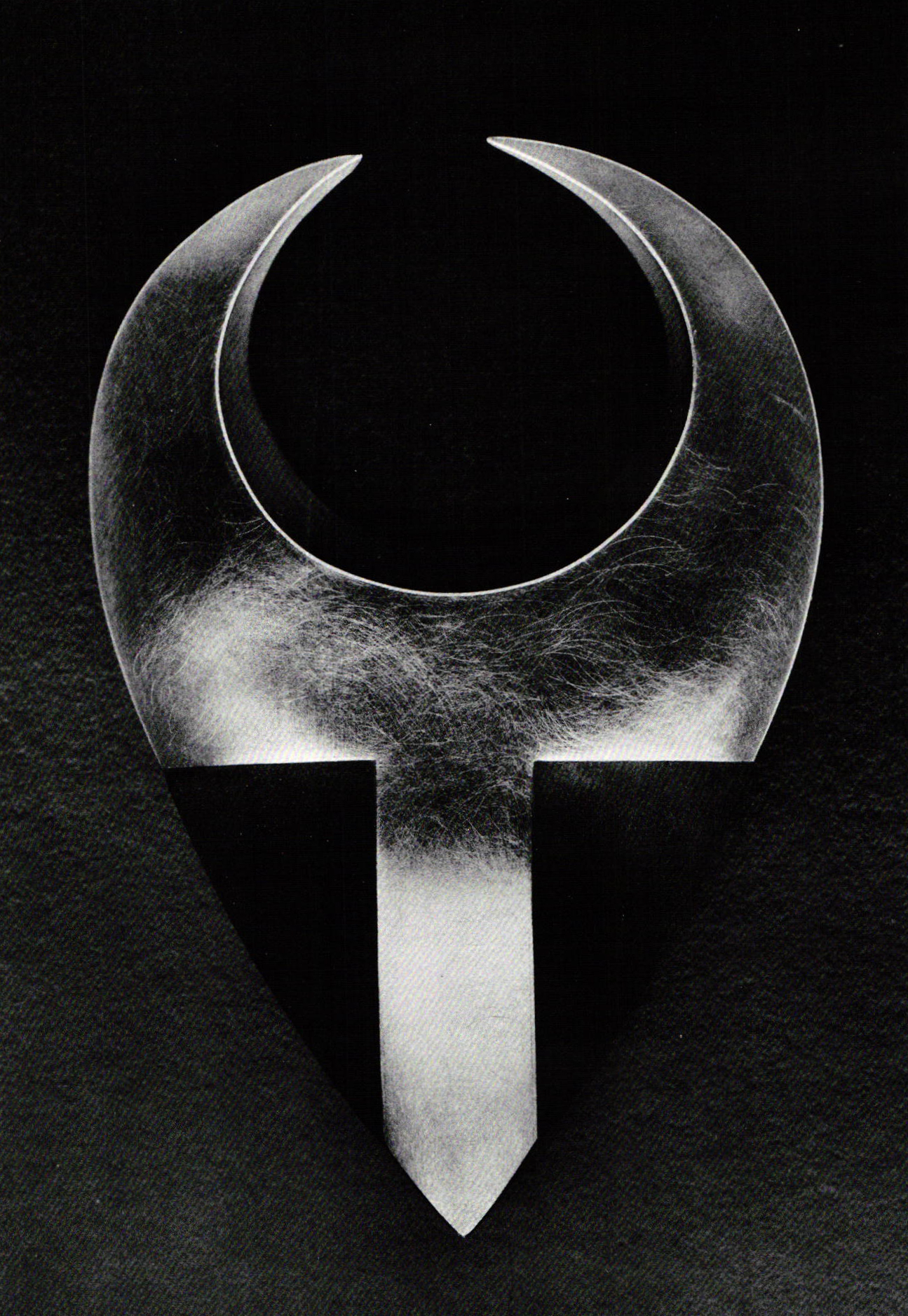 The 13 common and recognizable symbols (the star, the Liberty Bell, the cross, the dollar sign and the swastika), painstakingly hand-cut out of steel, were the components of Otto Kunzli's Big American Neckpiece. The work is a trenchant commentary on the artist's recent experience of living in the United States, with its overload of information. He even stamped all of the symbols with "Made in the U.S.A." to drive home his intentions. Although, at first glance, Kunzli's "jewelry" appeared to be a traditional necklace, upon close examination one realized that it was not intended to be worn. The weight is too much for the body and chain to endure. The symbols weigh the wearer down, both physically and conceptually. They appear as one strange mass of indecipherable form, a dense conglomerate of social, political and historical references.