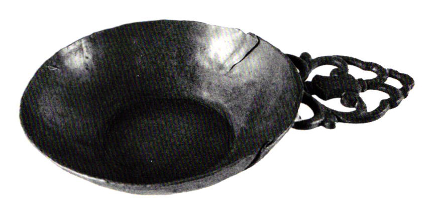 Douglas enters this western landscape in an effort to displace its myths. Within the context of metalsmithing traditions, she aims to dismantle our linear historical expectations. Overt gestures of juxtaposed traditional forms and materials reevaluate the tradition: a porriger, for example, is made of canned-goods tin, or of lead, and a carved masonite TV tray is entitled, Oak Tray. These evaluations, however, become exercises, inconclusive as criticisms.