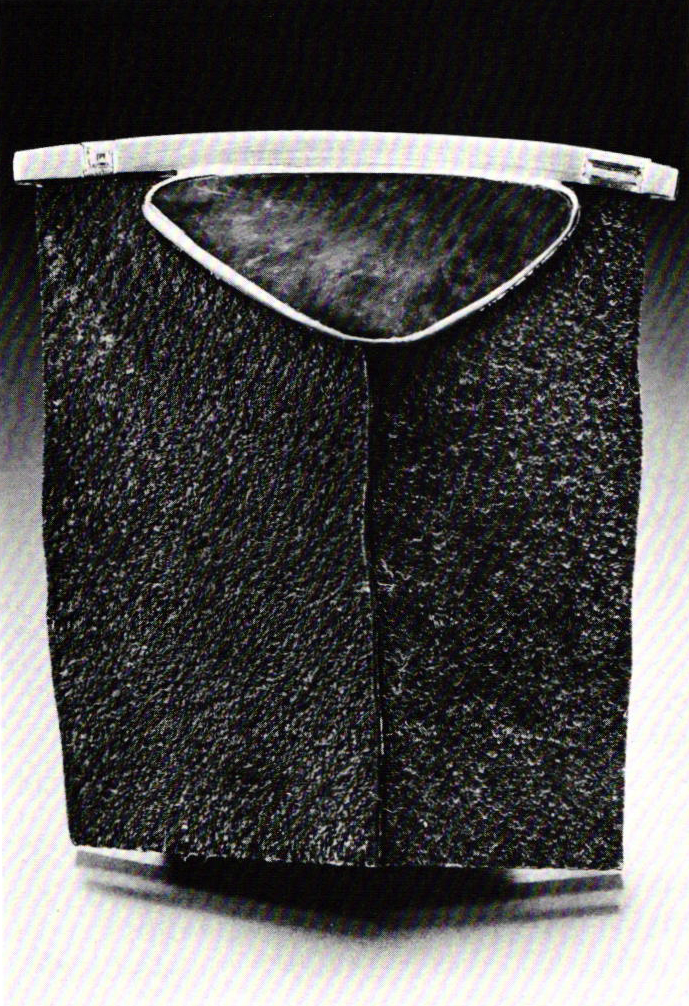 Rena Koopman approaches her jewelry very differently, focusing more on esthetic issues. All the work for this show was produced in 1988. Using the Japanese alloys of shibuichi, shakudo and mokumé, Koopman creates a mood in her jewelry reminiscent of abstract painting. The alloys are not merely overlaid, but inlaid into the metal surface. The inlaid, flat shapes establish spatial relationships similar to that of a Japanese print.