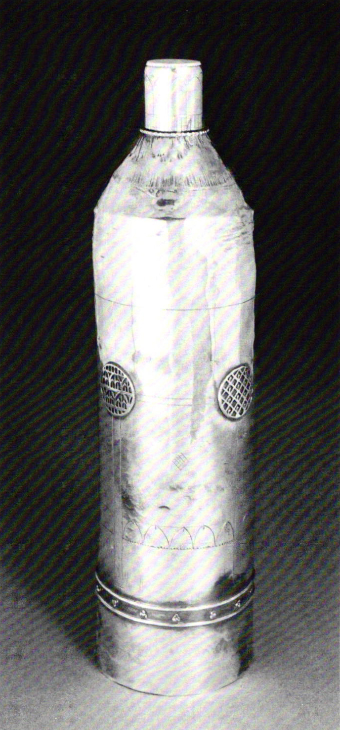 In contrast, there is a 1985 goblet which is an outstanding success. It is executed in silver, gold and crystal, with garnet and engraved decoration. It reflects a broad range of medieval influences as well as a hint of 20th-century austerity. The result is a piece with content, suggestive of the mystical reality of Christian ritual, capable of conjuring the deepest religious experience.
