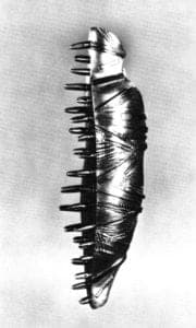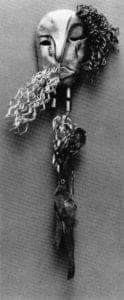 The wearers of these ornaments possess a low order of technology, but a compensatory sophistication of stylistic invention and responsiveness to the magic of the visual. Their spiritual life seems to be focused upon the celebration of rich detail; yet these clans lade into Fantasy with the discovery that the evocative totems are products of the artistry of Ken Bova, a metalsmith living and working in Bozeman, Montana.