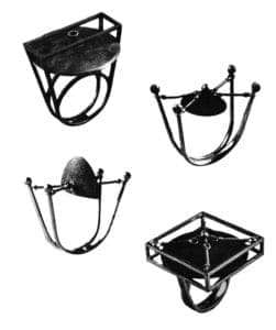 The purity of the abstraction derives from his evocation of material anonymity and structural logic, concepts germane to minimalist ornament as well as independent sculpture. The vessels are reductive and nondescript. The cages look like conical lampshades stretched and pulled down to the base. Even the fixture that holds the lamp reflects the overall design of a simplified rotational geometry. Efficient, ordered, calculated, they nonetheless uphold McCormick's trenchant wit directed towards metal's debased industrial past.
