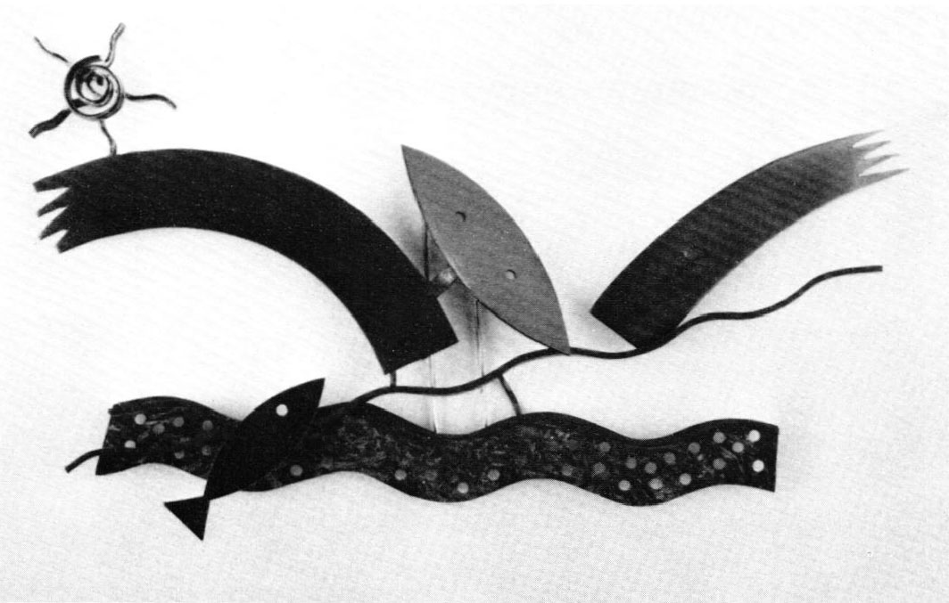 In contrast, the tabletop sculptures and their related wall reliefs are one step removed from his lamps and illuminated tableaux, transitional pieces that mark the shift from jewelry. In scale, they describe a torso with the implication of theatrical adornment, and as such they isolate more clearly McCormick's evolution from the semantics of constructivist jewelry: the abstraction of geometric motifs, the emphasis of volume over mass, the caged anthropomorphism, the delicate welding, the transparency of structure and, above all, a rationality of design that is physically alien yet cerebrally enticing.