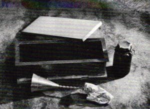Candleholders constructed from sterling, anodized aluminum and concrete have wire twist fasteners, a touch of overt handwork to complement the machined formalist look of the holder itself. The use of concrete in the base and top gives the holders weight, both literally and visually. While his stacked, modular, sterling silver candleholders with their calculated sense of elegance readily imply a design for a production, they do not have the impact of the other candleholders. The repetitive silver forms lend themselves to production but lose the sense of daring evident in his other work.