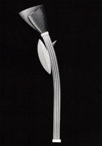 For example, Northern Garden #4 joined a "fabric-ated" sterling silver flower to a columnar stem, thereby contrasting an organic object with an architectural construction, a wary dichotomy echoed in the barbed stems of Thorns # 1 and #2. One may get a thorn prick when one romances the rose.