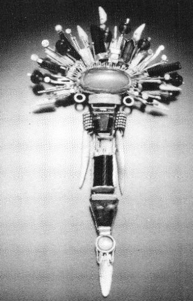 This combination of creative playfulness and focus moves beyond simply looking at and seeing a palette of "thousands and thousands of stones on my workbench" in an assemblage with gold and silver. It is, rather, the outcome of vision, the vision that early Surrealists recognized as an alchemical blend allowing materials and images to work with and through the artist. Judith Kaufman stares that in a world of planned and overplanned technicality and computerized precision she has chosen to "hold on even tighter to my trust in spontaneity and serendipity."
