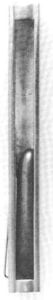 Nancy Michel's 2″ dangle earrings of softly folded 14k and 18k gold sheet with delicately striated surfaces presented the wearer with four choices. Each element was individually significant in scale and concept: a ¾" closed form sits in the earlobe, a curled, 1″ leaf-like pendant can be attached, thus creating what appeared to be one compound element. Though both forms can be worn alone successfully, more adventurous wearers could opt for an asymmetric pairing. The strength of this work was the integration of the design with the sureness of each function. These pieces beckoned to be handled.