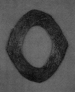 Kate Wagle's Vanitas series consist of four simple, white, cotton men's handkerchiefs that are pinned to the wall. On each handkerchief is a graphite drawing, and sewn on the surface of the drawing are embossed images in the form of tiny silver milagros. These works juxtapose the ideal and the mundane in an attempt to examine who we are in relationship to our hopes and dreams. In Vanitas: Stone and Divers, a perfectly faceted stone is rendered on a simple handkerchief while cascading down the side of the image are repeated milagros (representing everyday miracles) in the image of a diver performing the perfect dive. All of these works speak to the transitory nature of our existence and to the sustenance of small miracles. The most engaging of the four pieces is Vanitas: Hand and Rings where an x-ray image of a hand with wedding ring is rendered on the handkerchief. A grid superimposed over the image is only indicated by small gathers at the intersection of the grid lines. These intersections are punctuated by tiny jump rings. This piece reminds viewers of the indelibility of our relationships.