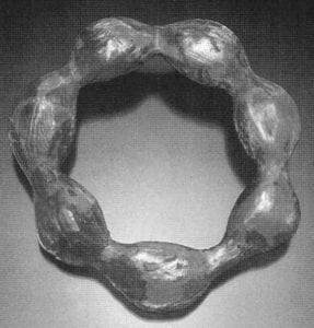 An exhibition may be impressive; yet, not provocative, and such may be the case in shows of ornamental metalwork and jewelry. Ornamental works often evoke keen interest and examination, only to lead to an immediate understanding and acceptance. There is appreciation of the design and its execution, but little more, and while the importance of good design and fabrication are not in question the role of the artist as commentator, interpreter, or pioneer is seldom considered in assessing this type of work. Yet in a highly advanced society, capable of extremely refined mass-production what place does the handmade functional object hold? The frontier continues to be the generation of new designs, new interpretations, and stylization of our world's tired inspirations.