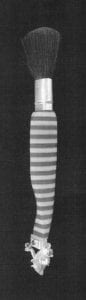 From inspirations found in nature to inspired whimsy there were several exhibitors whose work took a decidedly different spin. Cleverly combining sterling silver with laminated acrylic and, in some instances, adding semi-precious stones such as garnet, amethyst, citrine, and peridot, Gina Chaplain created fantastical spoons, "blush" brushes (makeup brushes), and bottle stoppers. These pieces were expertly fabricated with sterling silver storybook and imaginary characters mounted on their tops, and bands of boldly colored acrylic creating the handles. Walking Fish bottle stoppers, cast then fabricated in sterling silver, were designed intricately down to the most minute detail. These pieces were delightfully different, never silly, and they provided playfulness and fantasy, carefully juxtaposed with a touch of elegance.