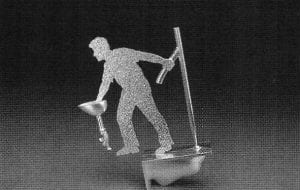 Wayne's Shaving Brush might be understood as another update of a mass-produced, though now obsolete object. By using fiber optic cables for the brush and L.E.D. lights as gems within the handle of the brush, Thomas-Allen creates a futuristic looking object. The handle of the brush is decorated with etched and copper plated mathematical signs. The brush symbolically represents her husband, and the Contemplation of Fun functions as a metaphor for her son.