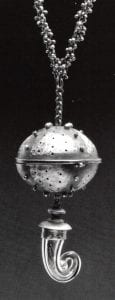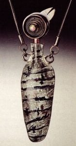 All of the metal artists engage the viewer aesthetically and intrigue the viewer intellectually. Certainly the most powerful level of response, the one most sought by each artist, is that of emotion. The viewer should want to study, hold, and ultimately wear each piece. Even more compelling with this body of work is understanding how the artist fabricated each piece.