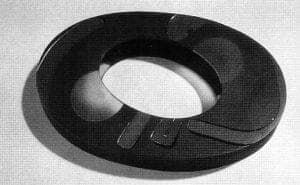 Born in an area of northern Japan which is famous for its iron casting, Ken-ichi Suganuma says casting is in his blood. Untitled Work 117 is pitted and rough-edged like an old hip joint recovered from an archeological dig. Untitled Work 76 could be a potter's whimsy after cutting the pot lids from a thick slab of clay. The surrounding space becomes form; the object, space. When asked why his pieces have no titles, Suganuma answered simply, "l wanted something I never had."