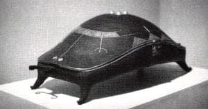 The show could have benefited from a different installation, one more tailored to the unique gravity and body-responsive qualifies of the pendant. Installed in horizontal cases on the second, mezzanine-like level of the elegant gallery space, directly over the retail area, the exhibition relied primarily on a passive presentation of the works. Some were suspended on rods inside the cases, but the majority were simply displayed on fabric wrapped platforms. Allowing a greater number of the works to be viewed suspended would have formed a more distinct presence for the exhibition.