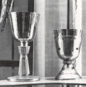 Though not surprising, Rome has a multitude of liturgical metal "galleries" which specialize in supplying the necessary ecclesiastical accessories. The greatest number of these are massed around the Pantheon. F. Braggio & Figli, Via di S. Chiara 39, exhibits traditional, well-crafted chalices with married metals, repoussé and enameling. Giamperi, Via de Cestari 39, offers articles which are mostly cast or lathe-turned.