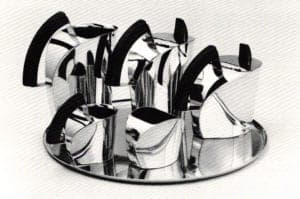 Some of his sculpture functions as fountains. His chairs are sculptural forms designed to hold the human body. The jewelry is literally sculpture to wear. Many of his most minimal, modernist works make music. They are all abstractions, or rather extractions, from nature, suggestive of fields of grain, shooting stars or plant forms, perhaps, but always with multiple interpretations relative to scale, color, movement and sound.