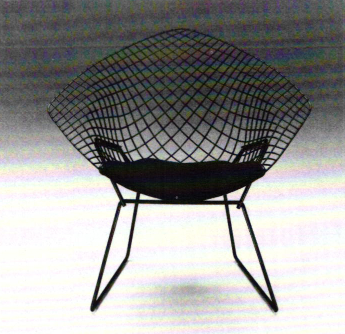 After first persuading Knoll to establish a metals shop in their previously solely wood-oriented factory, Bertoia researched human posture and movement and selected the diamond as the modular unit most suitable for his chairs. Bertoia's frank practicality: "A Chair is designed as much by one's behind as one's head" was united with a demanding esthetic.
