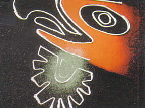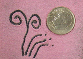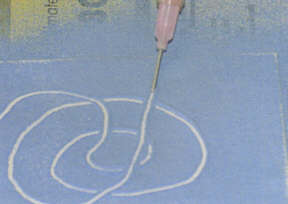 The vacuum cleaner can also be used to create simple design elements such as lines and dots. In Figure 5, pink enamel was sifted over a black background.