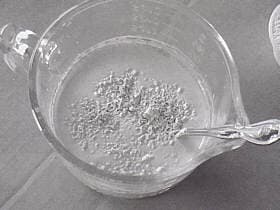 | Figure 1, set up showing ratio of powder to water. | Figure 2, powder floating on top |