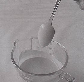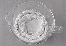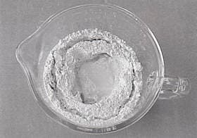 Again, the answer is easy; it can be done either way. First, the powder into the water. Figure 1 shows a set up (not necessarily the best). Put two containers of water into the measuring cup. Add the five contain ers of powder one at a time slowly while stirring the enamel. The powder should be scattered onto the entire surface of the water, not poured in one spot. At first, the powder disappears quickly, dispersing in the water and little stirring appears necessary. The elec trolytes are being dissolved in the water, the rest of the powder, being insoluble, is being dispersed. Usually, as the second container is being added, powder will begin to float on top instead of being dispersed immediately, Figure 2. Hesitate a few seconds while it wets and sinks. You are in the process of wetting a few square miles of surface area.
