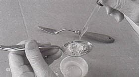 | Figure 9, mixing liquid form enamel in tablespoon. |