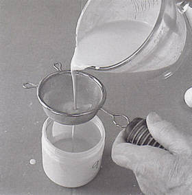 The final step of mixing is straining the enamel, Figure 5. A tea strainer is quite adequate. With a little practice, the coating thickness desired can be obtained rather easily. Once the procedure is understood, weights and measures will probably be of little concern.
