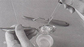 Figure 7, adding water to cavity in powder using an ear syringe.Figure 8, showing water forming it's own 'container'