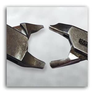 "To use them to unseat a stone, I take the top jaw with its tiny hook and grab the whole face of the prong but without touching the stone," he continues. "I rest the bottom jaw on an area of the mounting that creates a cantilever effect. I close the pliers over the prong and gently pull the prong back."