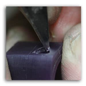 To create seats in wax models, many jewelers use a bur in their flex-shaft to quickly clear out material. But the rotary action of the flex-shaft makes it all too easy to remove too much material from the wax. Seeking a better tool for the job, Lee looked no further than the X-Acto knife on his bench.