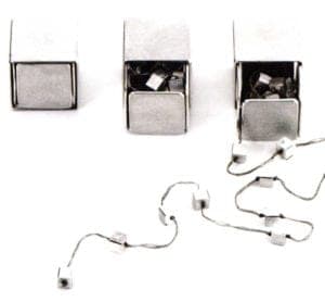 Dice chain and dice container. In Kirsten Plank's work, the packaging and the jewelry are mutually complementary, while the geometry is the principle that defines the form