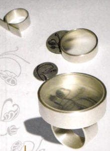 Interchangeable jewelry by Sabine Spangemacher. The images beneath the mat pane of glass can be exchanged
