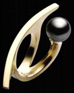 "Lagoon" is the name of the nestling ring with a mysteriously blue shimmering Tahiti pearl by Angela Hübel