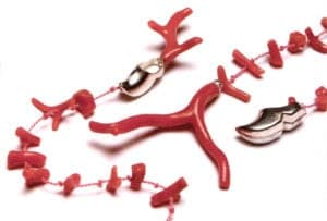 Homage to the Dutch North Sea: necklace and bracelet with coral and silver clogs by Neeltje Huddleston Slater