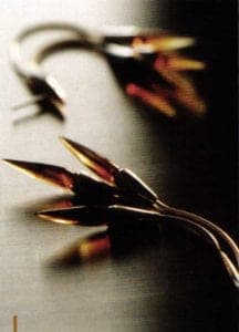 The individual elements are strictly graphic, put together to form golden rings by Dominique Labordery
