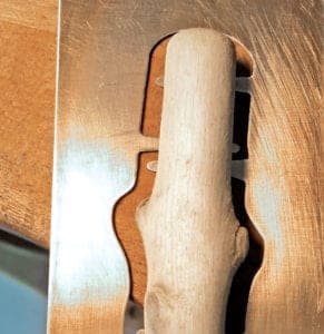If you choose to patinate the metal, sand, clean, finish, and burnish it at this point, and then patina to avoid damage to the object.