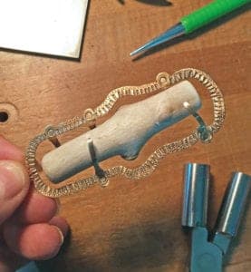 Verify the fit of the object and the security of the tabs. The bail I made is split in the center, so I rolled it down at this point as well.