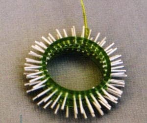 Pendant by Deirdre Coleman. Green bottle neck with silver moveable wire on coated green wire