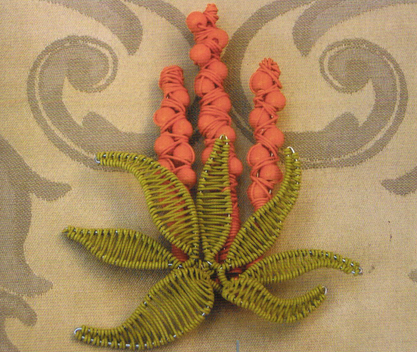 Brooch by Magda van der Vloed. Telephone wire, beads