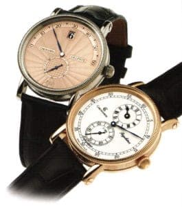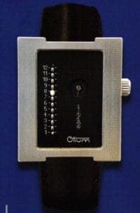 It's not only Otium's watches that are mechanically driven. Sphaera's clockworks move a disc under the face that a tiny channel is milled into. As soon as the disc starts moving, the balls wandering over the slits on the face are in this curved channel. Other unusual watches are based upon mechanical clockworks that either automatically get their energy from the motion of its wearer or by being wound up. And it's incredible everything you can do! There are digital displays where you can read the time through a little window (by Jörg Schauer), regulators (see the information box) and retrograde displays, each trying to top one another in diversity and original design.