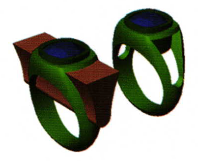 Using Rhino 4, though, we're able to easily fit the chisel-edged knot perfectly into the cut-outs in the signet ring, automatically matching the curvature and shape ofthe knot to the contour and taper of the cut-outs.