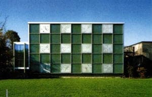 Constructed between 1957 and 1961 according to plans drawn up by Manfred Lehmbruck, the listed building attracts people enthusiastic for jewelry and for architecture also. Erected in the clear language of forms found in "International Style", the complex is dominated by two cubes with a refined exterior design, protruding directly into the City Gardens. The interior design is also a protected monument. The freely suspended, spiral staircase in the foyer is still an impressive eye-catching room sculpture. The new exhibition rooms, bathed in sunlight, belonging to the former library, offering an expansive facade of windows, perfectly suit the museum building.