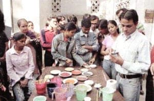 During five days students were introduced the basic techniques of enameling e.g. wet packing, sgraffito, stenciling, sifting, etc. on copper with flux and industrial enamels.